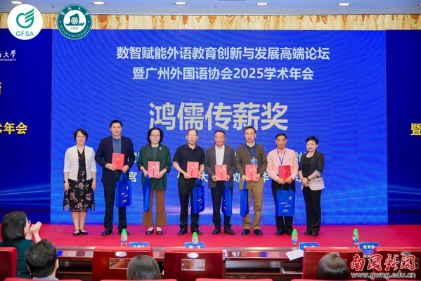 开幕式上,广州外国语协会表彰了在外语教育领域做出杰出贡献的专家学者,陈林汉、曾用强等10位专家获评“鸿儒传薪奖”。