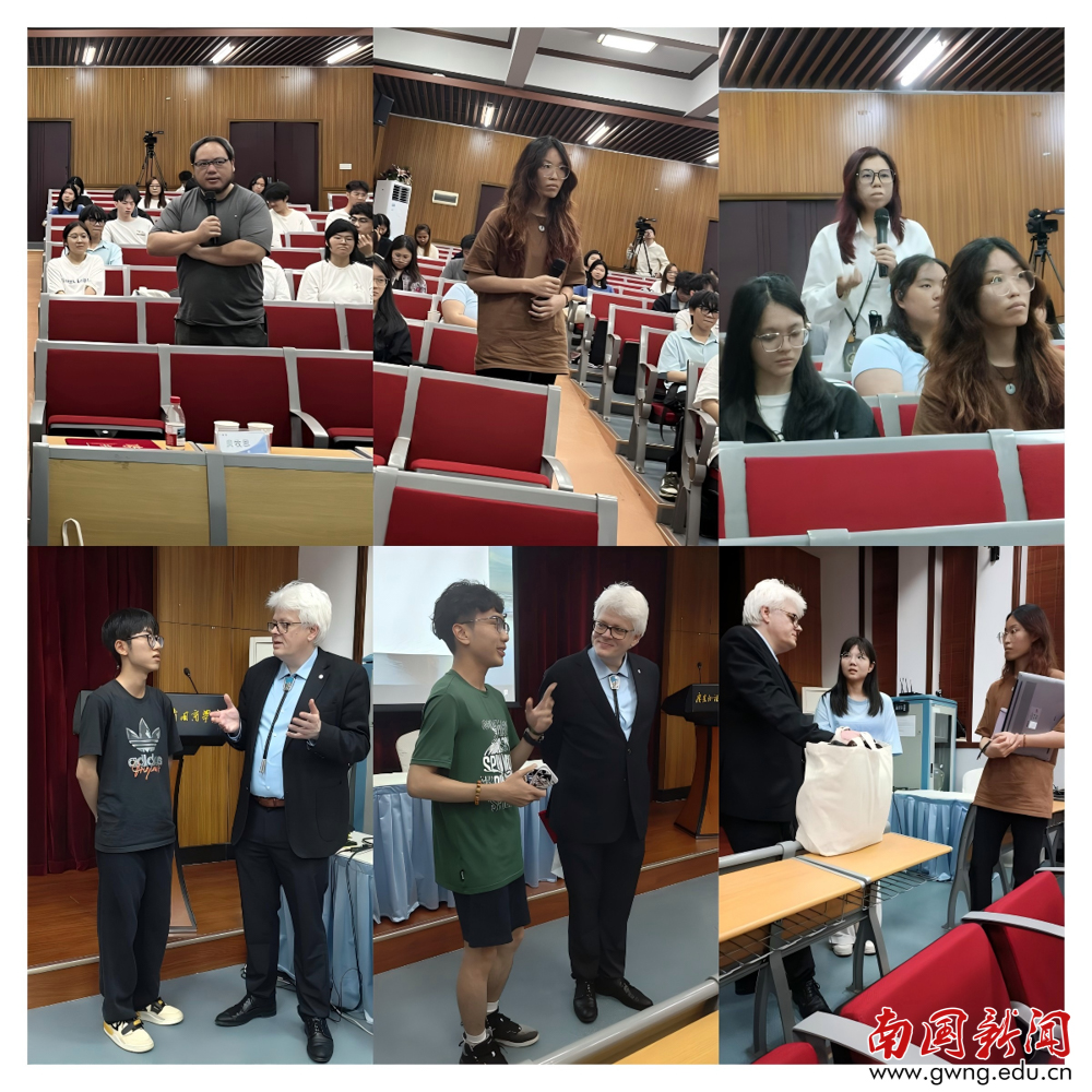 互动环节中,参会师生踊跃提问,与Rasmus教授进行交流。他就美国对格陵兰岛的战略意图、伊朗局势与美国全球战略联动等热点问题耐心逐一解答,以专业视角剖析复杂的国际形势,为与会师生提供了独特的观察维度与理论支撑。