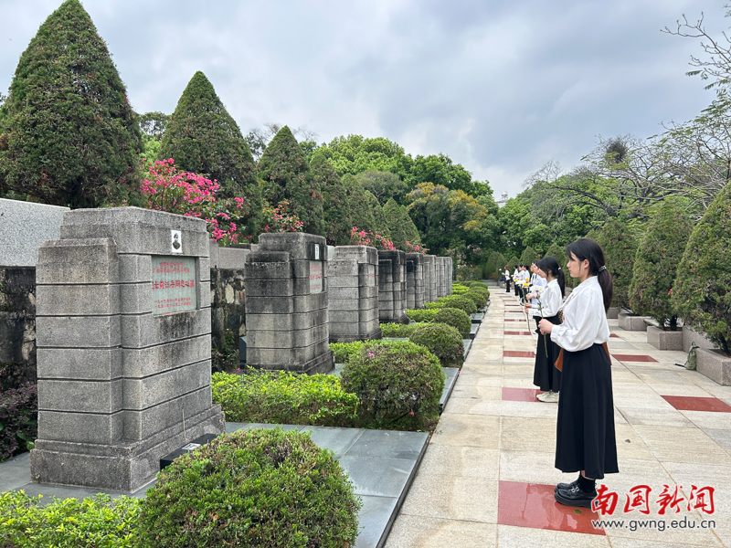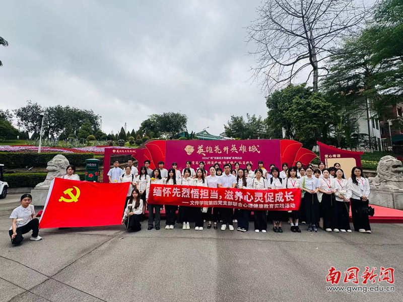 本网讯 为传承红色精神,厚植爱国情怀,强化党员党性修养。文化与传播学院第四党支部联合学院心理辅导站于4月2日下午在广州银河烈士陵园开展以“缅怀先烈悟担当、滋养心灵促成长”为主题的党日活动。文化与传播学院第四党支部书记邓凯文、组织委员董春晖、宣传委员刘钦明、心理辅导站乔旖旭老师、部分支部成员及辅导站同学参与此次活动。本次活动旨在通过庄严肃穆的祭扫仪式,引导党员在缅怀先烈中感悟初心使命,厚植爱国情怀,坚定理想信念,汲取奋进力量。活动激励学生以先烈精神为指引,勇担时代责任,践行入党誓词,争做新时代合格青年。