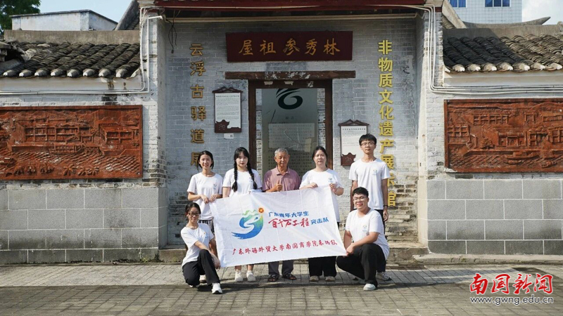 立足云浮深厚的文化底蕴,东扬队深入挖掘当地红色文化与非遗资源,全力推动文化传承与创新。团队成员走访红色遗址、访谈老党员,梳理尘封的党史故事,让红色基因代代相传;聚焦云浮禾楼舞、石雕、根雕等非遗技艺,组建调研团深入云浮市文化馆、图书馆及兰寨村等传承地,走访禾楼舞传承人傅志坤等民间艺人,系统梳理非遗技艺的历史脉络与文化内涵,拍摄非遗纪录片,记录技艺传承故事,让古老的非遗技艺走出深巷、走进大众视野。此外,团队还发挥多语言优势,用中文、粤语、日语、英语和泰语介绍云浮文旅亮点,制作宣传片发布于网络平台,进一步扩大云浮文化的影响力,让红色文化与非遗技艺在新时代焕发新生。