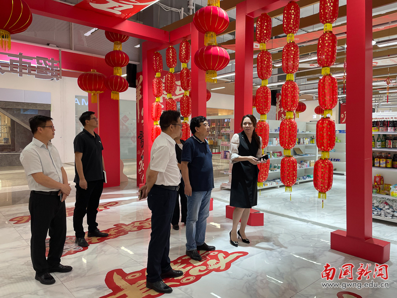 在白龙控股集团董事长邝秀蔓女士的陪同下,我校一行先后参观了白龙传媒电商直播基地沉浸式场景直播间、选品中心、短视频创作区、商务办公区及空中会所等核心功能区域,详细了解基地在直播带货、网红孵化、品牌运营、供应链管理等方面的运营模式与发展成果,直观感受全链条电商直播产业生态的运作流程。基地完善的硬件设施、成熟的运营体系、丰富的实战场景及亮眼的业绩数据,给我校考察团留下深刻印象。