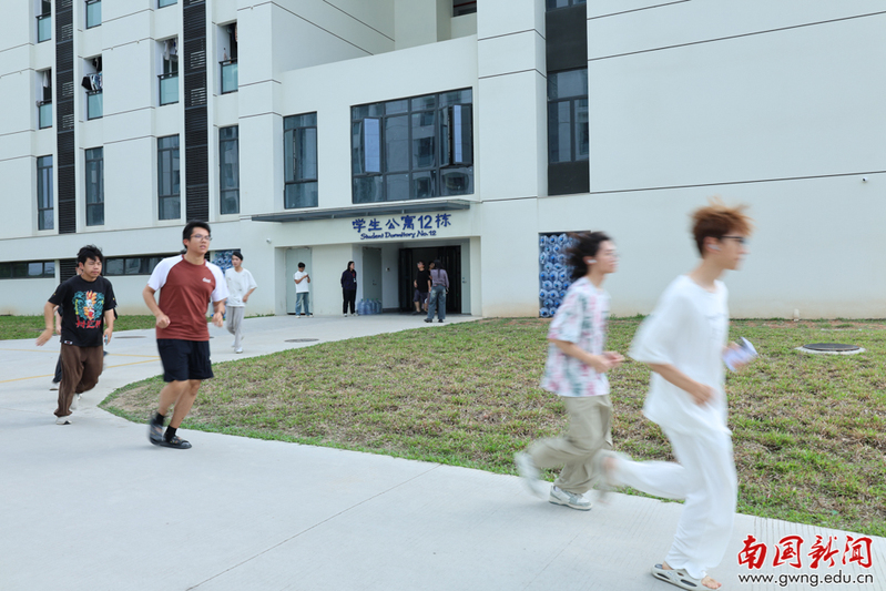15时30分,急促刺耳的应急警报声准时响起,演练正式启动。听到警报后,全体师生迅速进入应急状态,严格按照预设流程,弯腰低姿、双手护颈,避开危险区域,沿着指定疏散路线快速有序向各集结点撤离。撤离过程中,学生们沉着冷静、听从指挥,彼此提醒保持安全间距、注意脚下障碍,无拥挤、无慌乱现象;辅导员、宿管人员及学生志愿者在楼道拐角、楼梯口等关键位置全程引导,及时协助有需要的学生,保障疏散过程安全高效。