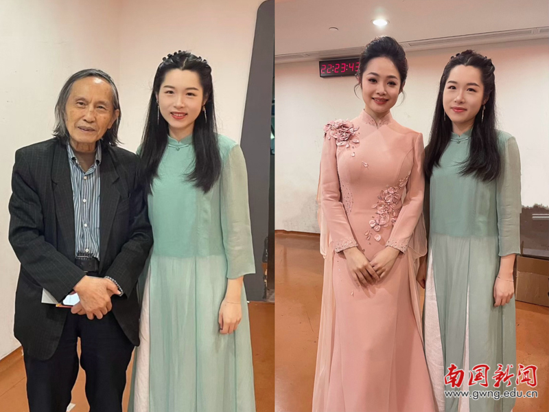 杨箫铭老师与曹光平教授、第十四届中国音乐金钟奖声乐(民族)比赛第一名获得者陈滢竹合照