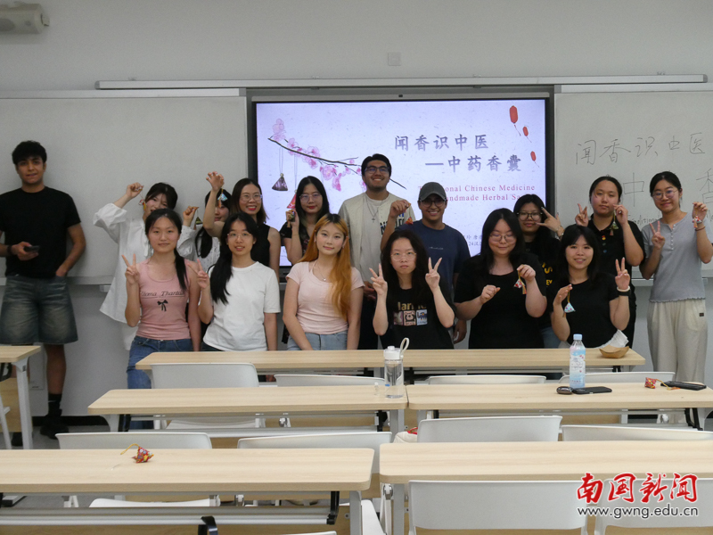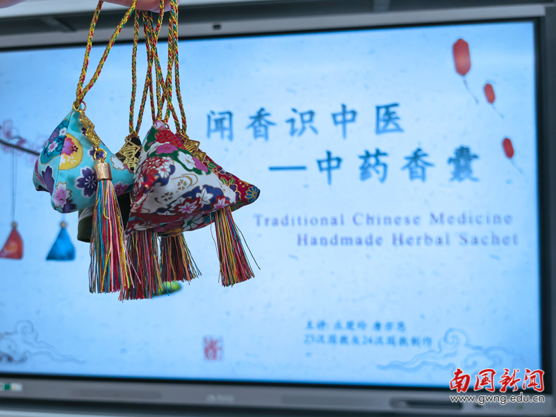 本网讯 为促进中外文化深度交流,让留学生沉浸式感受中国非物质文化遗产的独特魅力,近日,国际学院组织开展留学生文化体验系列课程,活动邀请23级、24级汉语国际教育专业学生带领留学生们在H703教室开展了一场别开生面的香囊手作体验活动,活动由国际学院尹向红老师、文化与传播学院汪贝娅老师全程指导。