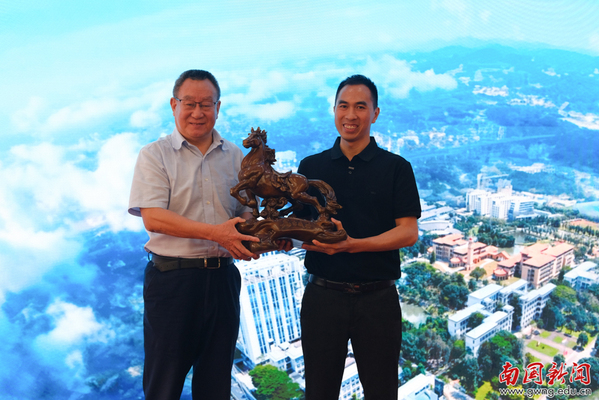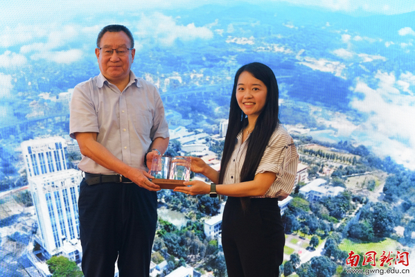 仪式现场,校友总会副会长、南国首任校长顾也力先后接受西语学院校友会、计算机学院校友会赠送的纪念礼品,一份份心意承载着校友对学校的感恩之情,诉说着师生同心、校院同行的深厚羁绊。