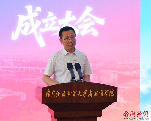 赖志立表示,建校30年来,学校始终坚守“为了学生未来发展”的办学理念,深耕粤港澳大湾区教育沃土,累计为社会输送六万余名优质应用型人才,广大校友扎根各行各业、实干奋进,已然成为母校最亮眼的名片与最坚实的底气。他指出,西语学院依托多语种特色深耕国际交流,计算机学院紧跟数字时代浪潮,聚焦数智创新,两大学院优势突出、特色鲜明,为学校高质量发展注入强劲动力。结合建校30周年契机,两院校友会的成立既是献礼校庆的重要举措,更是学校校友工作提质升级的关键一步,他寄语校友会当好校友联络的连心桥、学院发展的助推器、学校形象的代言人,凝聚校友力量反哺母校,希望校友们立足专业专长奋勇争先,常念母校情、共筑新未来。