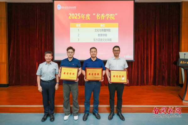 本网讯 4月 22日下午,广东外语外贸大学南国商学院第二十届“启卷・书香启航”读书月启动仪式在学术报告厅F101举行。党委副书记、校长王华,副校长曾用强出席仪式。图书馆馆长孔晓明作2025年度阅读报告,多项核心指标较上年大幅攀升,校园阅读呈现全面“卷”起来的鲜明态势:学生年度最高入馆次数达1313次,上一年的榜首成绩在今年仅能排至第八位;文化与传播学院蝉联“书香学院”榜首,东方语言文化学院人均借阅量跻身全校前三,阅读表现显著提升;数字资源访问量、阅读活动参与人次同比分别增长44.2%和39.4%。现场同步表彰阅读榜样、启动读书月系列活动,以浓郁书香献礼学校30周年校庆。仪式由图书馆副馆长于雨凝主持。