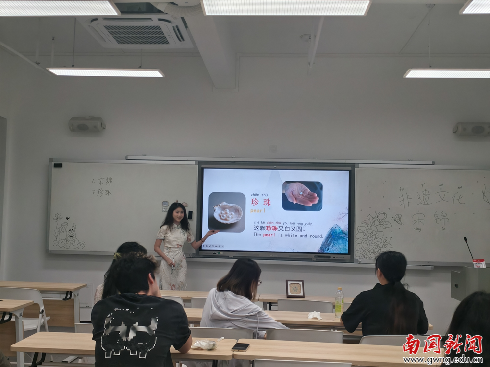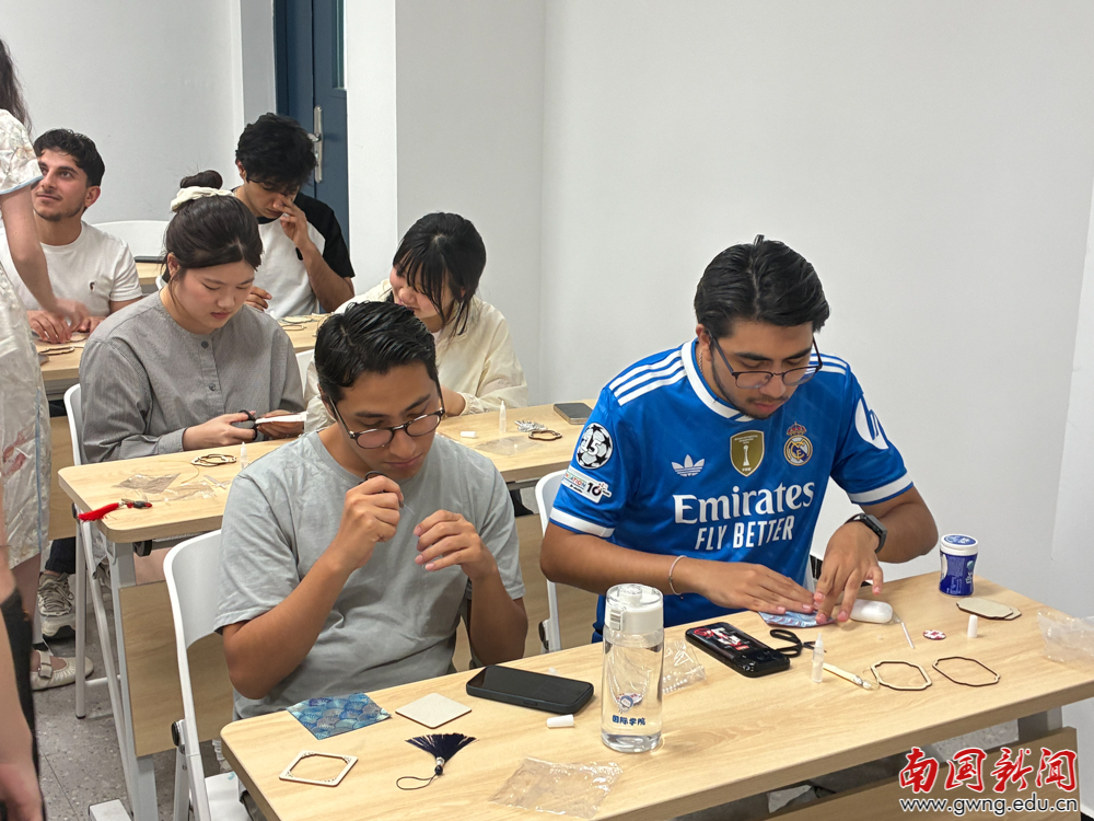 本次课程由国际学院尹向红老师和文化与传播学院汪贝娅老师共同指导,邀请文化与传播学院汉语国际教育专业学子授课,以“非遗宋锦冰箱贴制作”为核心主题,23级汉语国际教育班黄振泫、24级汉语国际教育班缪靖璇同学担任主讲,全体留学生参加。