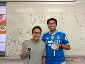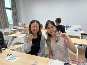 活动尾声,留学生们手持自己精心制作的宋锦冰箱贴,主动用刚学会的汉语词汇分享制作感受与收获,与“小老师”们亲切合影,定格下这场跨文化交流的温暖瞬间,也为本次宋锦专场体验课画上圆满句号。