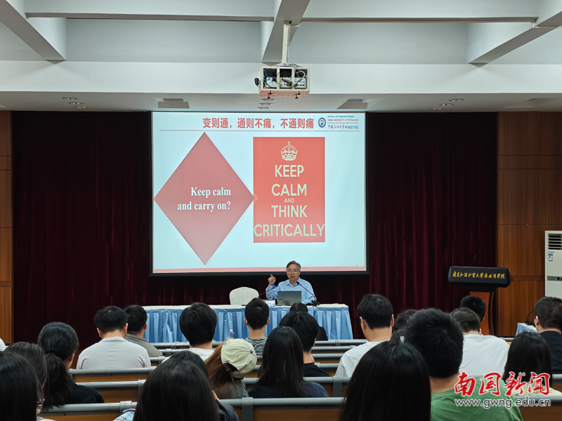 讲座伊始,毛浩然教授以“扣错扣子”为喻切入主题,结合“螃蟹效应”“井底之蛙”“傻子共振”等生动形象的类比,深刻阐释了“认知层次决定行为模式”的核心观点,着重强调了“做正确的事(do right things)”的重要性。他指出,在当前国际传播格局下,我国外语人才培养正面临“有理说不清、说了传不开”的“卡嗓子”困境——许多学习者仍局限于“自说自话”的叙事模式,习惯用机构化语言开展个体沟通,最终导致国际传播呈现“高投入、低转化”的尴尬局面。