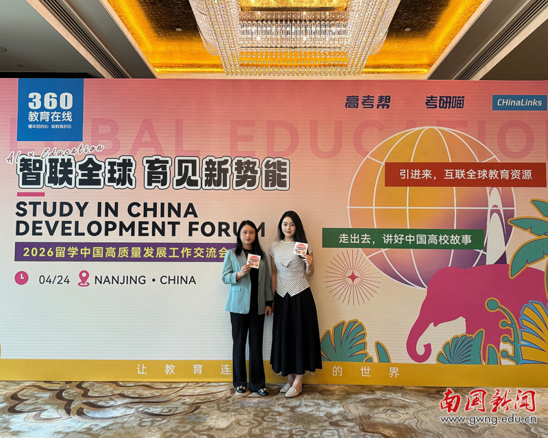本网讯 4月24日,以“智绘AI新篇・筑联全球教育・共拓东南亚新局”为主题的2026留学中国高质量发展工作交流会在江苏南京玄武区隆重举行。我校国际学院院长助理尹向红副教授、国际合作与交流处吴咏旋老师受邀参会,与来自国内外220多所高校的来华留学工作负责人、国际教育领域专家齐聚一堂,共话人工智能时代下来华留学的新机遇、新挑战,共探中国-东盟教育合作的新路径、新方法。