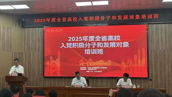 为深入学习贯彻习近平新时代中国特色社会主义思想,全面贯彻党的二十大和二十届历届全会精神,严把党员发展“入口关”和“质量关”,全面提升入党积极分子和发展对象的政治素养和理论水平。2025年9月24日至29日,由中共广东省委教育工作委员会主办的“2025 年度全省高校入党积极分子和发展对象培训班”在华南师范大学成功举行。我校杨岚、刘家乐同学分别作为发展对象和入党积极分子,与来自全省高校的125名学员,共同参与了为期三天的集中培训并顺利结业。