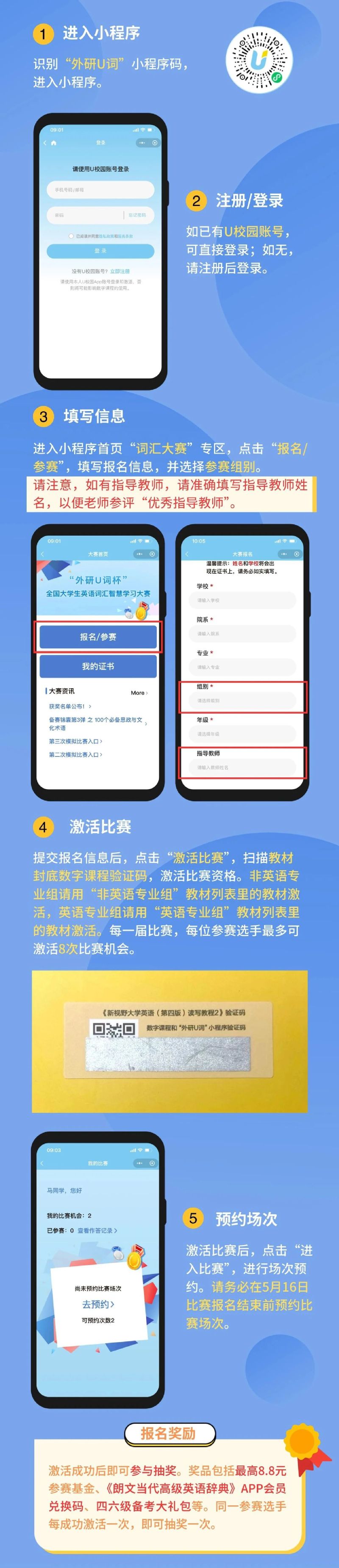 大赛依托“外研U词”微信小程序举办。学生可通过“外研U词”微信小程序免费参加大赛,报名方式详见“报名方式”。