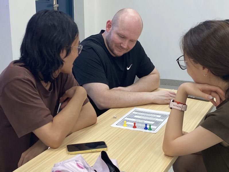整场活动亮点纷呈,Vincent老师不仅保持高频互动,耐心倾听每一位同学的观点,还巧妙引入“大富翁”游戏机制,小组讨论表现优异即可获得“游戏积分”,既活跃了现场氛围,又大幅提升了参与感。他还深入各小组参与交流,以平等的对话姿态鼓励大家大胆表达,让英语角成为“敢说、会说、爱说”的双语思辨空间。