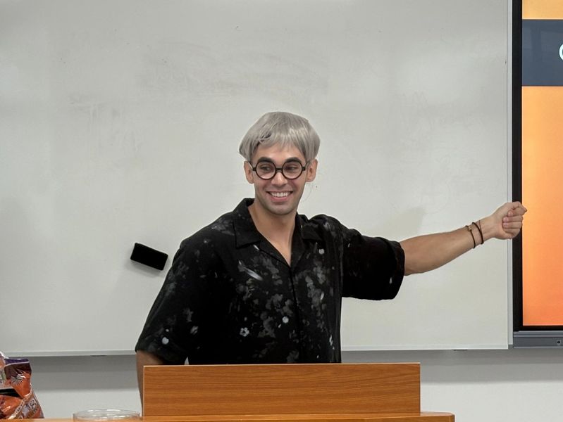 活动伊始,Lucien老师以清晰的逻辑展开深度讲解。他从古代凯尔特人的“萨温节”切入,梳理了万圣节历经罗马文化融合、基督教传播后的演变脉络,最终清晰呈现万圣节中南瓜灯、节日装扮、“不给糖就捣蛋”等经典元素的由来。讲解中穿插鲜活案例——如不同地区万圣节习俗差异、影视作品中的节日元素呈现,引导同学们思考中西方节日文化的差异与共通点,现场讨论热烈,同学们纷纷结合自身对传统节日的认知分享见解,让文化认知更立体。