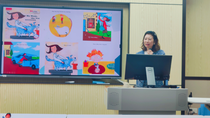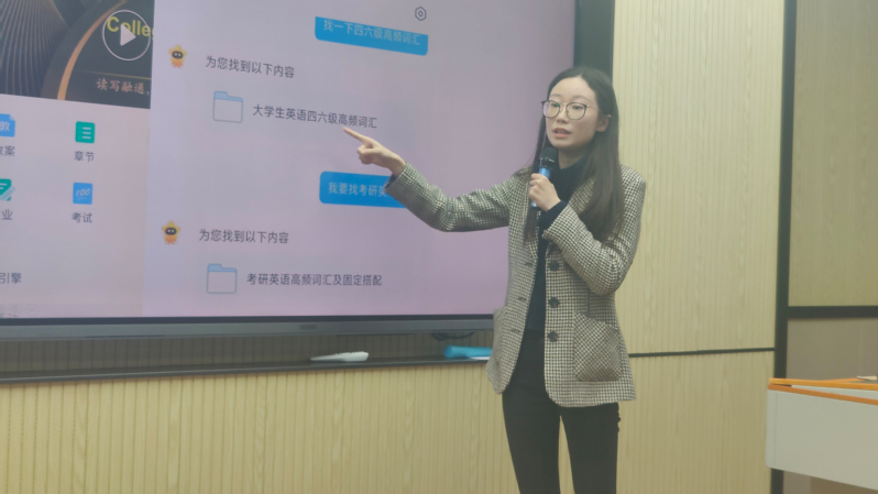 紧接着,杨雪仪老师带来了题为 《大学英语(1)AI实践分享——以学习通为例》 的务实报告。她的分享从一线教学的实际需求出发,全方位展示了学习通平台内嵌的AI功能如何服务于课堂教学全流程。杨老师重点介绍了AI智能批阅对英语作文、简答题等主观题批改效率的革命性提升,以及AI绘画与视频生成功能在创设教学情境、激发学生兴趣方面的独特优势。她现场演示了如何将一段关于袁隆平院士的英文文本迅速转化为一段生动的视频脚本与画面,让语言学习跨越文本,变得直观而充满感染力。此外,杨老师还分享了利用AI创建个性化HTML单词游戏、进行学情数据分析等实践,为在座教师提供了大量可即学即用的操作方案。