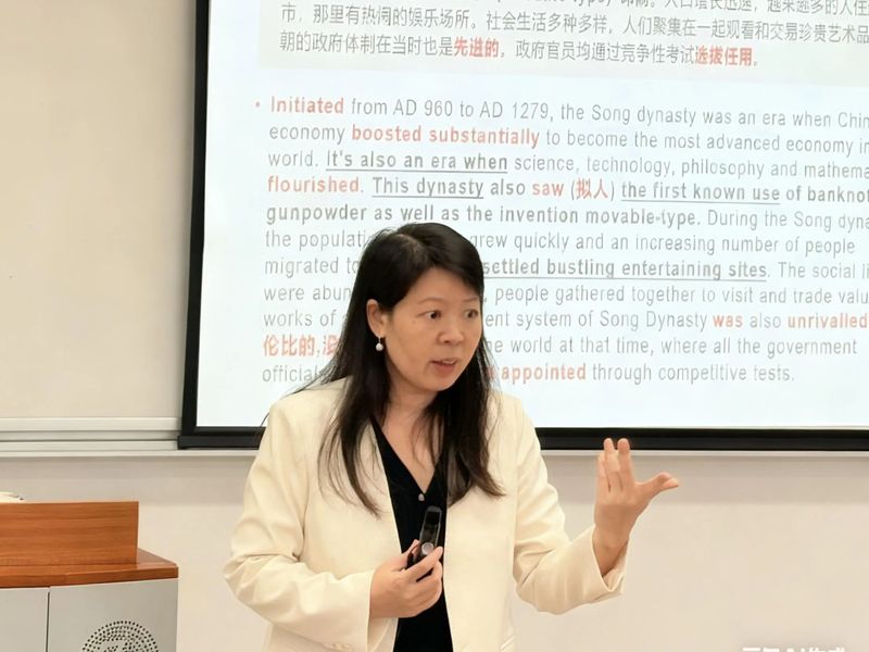 李爱莲老师讲解听力句式分解方法(陈钟欣 摄)
