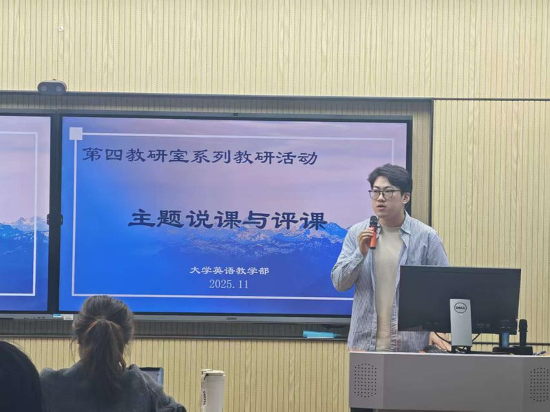 11月27日,大学英语教学部第四教研室开展示范课说课与评课活动,分别由樊傲宇老师和姚远晨老师主讲。本次活动聚焦“学位英语”课程,围绕大学英语考试能力,结合分级教学与思辨训练,旨在提升学生语言应用能力与跨文化交际素养。