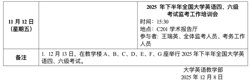 2025年秋季学期第14周会议和活动安排表