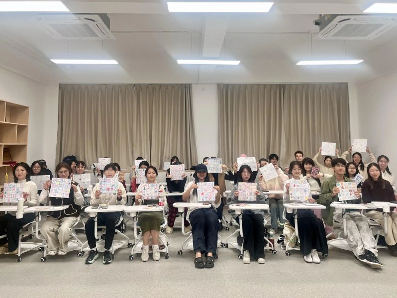 活动开场,Ryan老师清晰讲解活动规则,引导同学们现场绘制5×5专属游戏表格,随后发放包含姜饼人、松果、圣诞帽、雪花等24种经典元素的图片素材。同学们手持多彩马克笔,认真将节日标志物绘入表格,笔尖流转间,浓郁的节日气息悄然弥漫整个教室,大家满怀期待迎接游戏开启。
