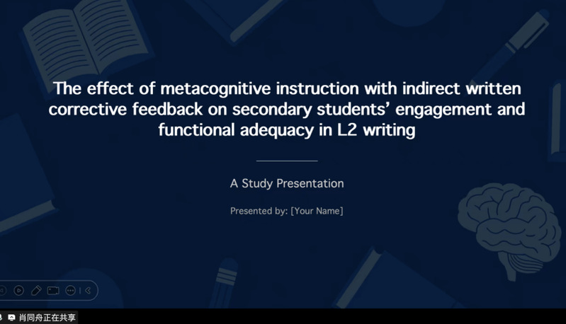 3月7日上午,大学英语教师发展研究所第四十六期学术研讨会于线上顺利举行。本次研讨会由徐鹰教授主持,博士生肖同舟担任主讲导读,研究所部分成员参与研讨。本次研讨会的议题聚焦于“元认知教学与间接书面纠正性反馈对中学生二语写作投入度和功能充分性的影响”,深入研读并讨论了Miseong Kim与Phil Hiver于2025年发表于Assessing Writing期刊的论文“The effect of metacognitive instruction with indirect written corrective feedback on secondary students' engagement and functional adequacy in L2 writing”。