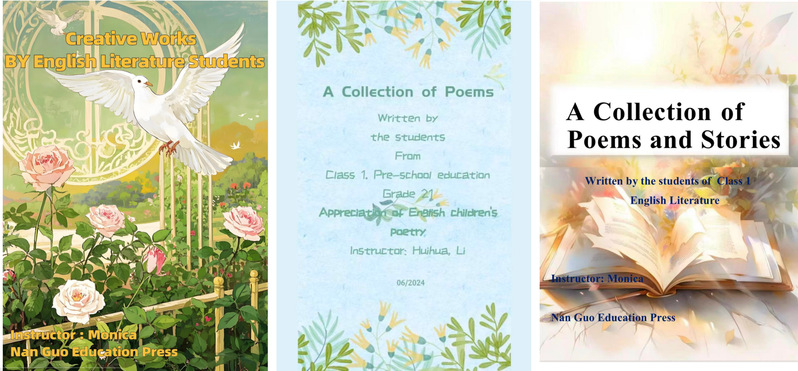 为了让学生更好地“看见自己”,黎会华教授自2019年起,便将学生的原创文学作品集结成册,至今已累计汇编17本文集。她满怀深情地为每一本撰写前言,记录下学生们在南国校园的青春足迹。此外,她还组织学生朗诵英文诗歌、为英剧配音、学唱英文歌、改编经典剧目、拍摄英语短剧,让文字真正融入思想,让表演拥有灵魂。