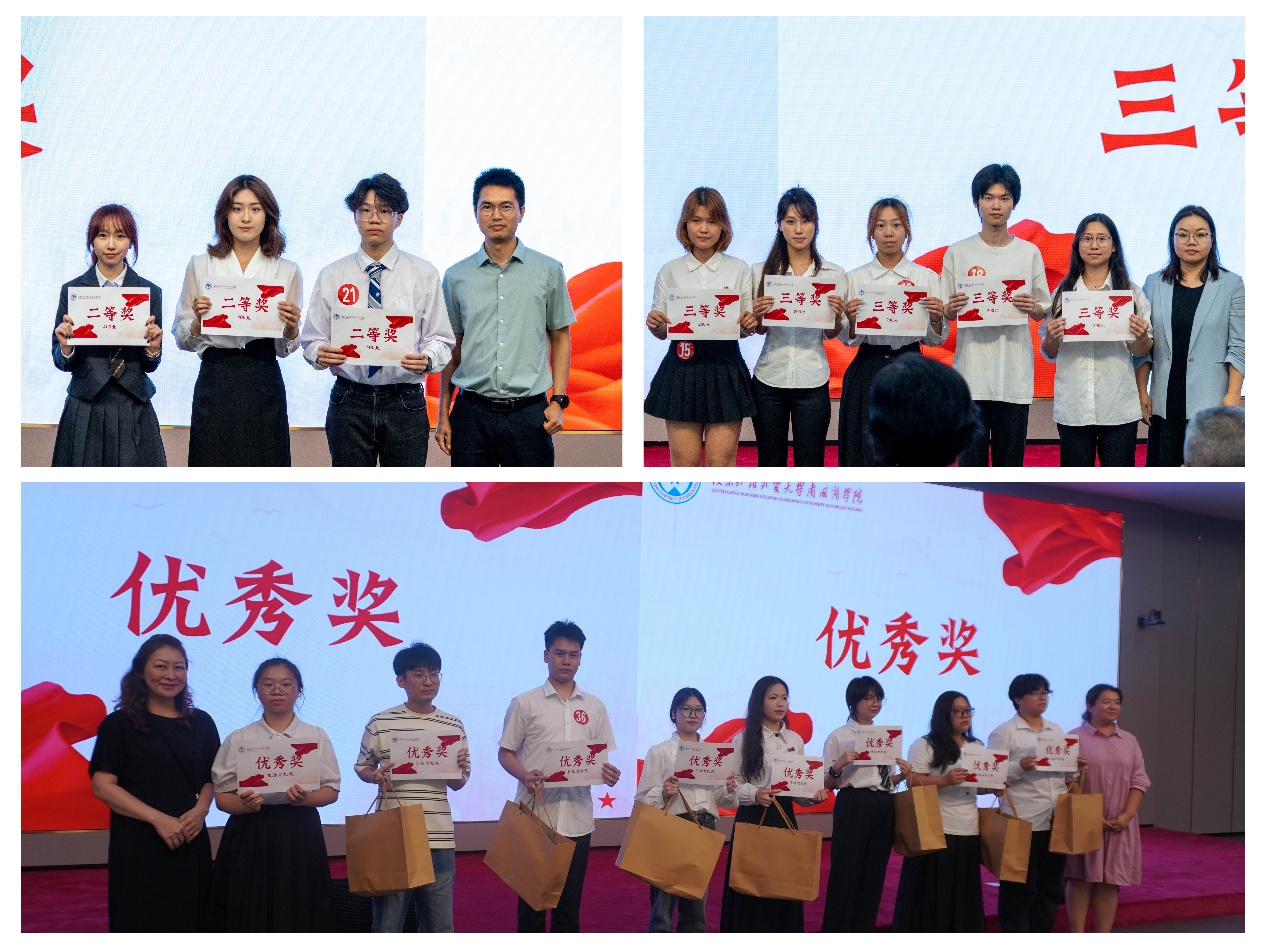 三等奖:根正苗红队(参赛语种:西班牙语)、红色先锋队(参赛语种:朝鲜语)、踏红路沐春风队(参赛语种:英语)、红旅葡生队(参赛语种:葡萄牙语)、丰碑粤影队(参赛语种:泰语)