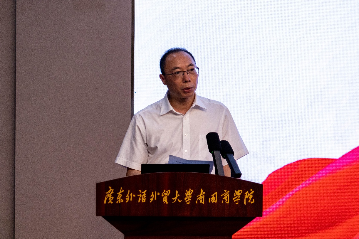 活动伊始,郭桂杭副校长发表开幕致辞。他指出,广东作为红色沃土,拥有众多红色遗址和景点,本次大赛是学校“随时随地讲外语•学外语•用外语”活动的品牌项目之一,本次比赛特别重视专业融合和学科融合,希望选手们在决赛中展现最佳水平,用外语讲好广东红色故事,传承发扬红色文化。