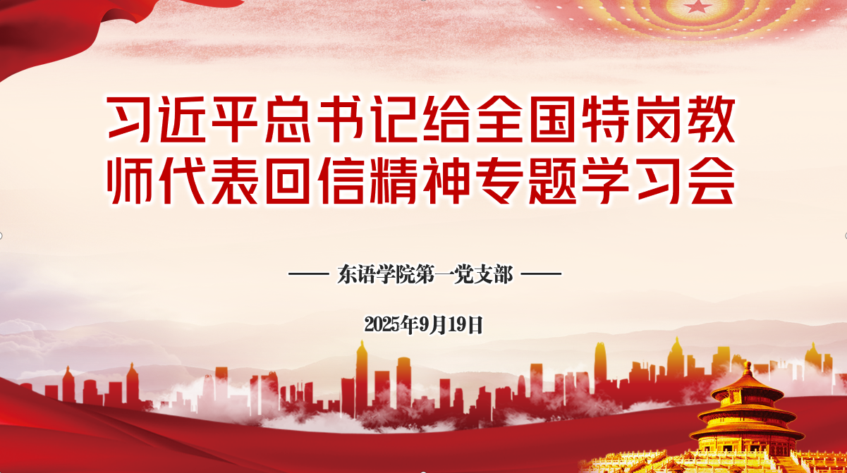 9月19日,东语学院第一党支部在H302召开习近平总书记给全国特岗教师代表回信精神专题学习会,组织第一支部全体党员集中学习习近平总书记给全国特岗教师代表的重要回信精神。会议由谢丹平书记主持,第一支部党员全体参加。