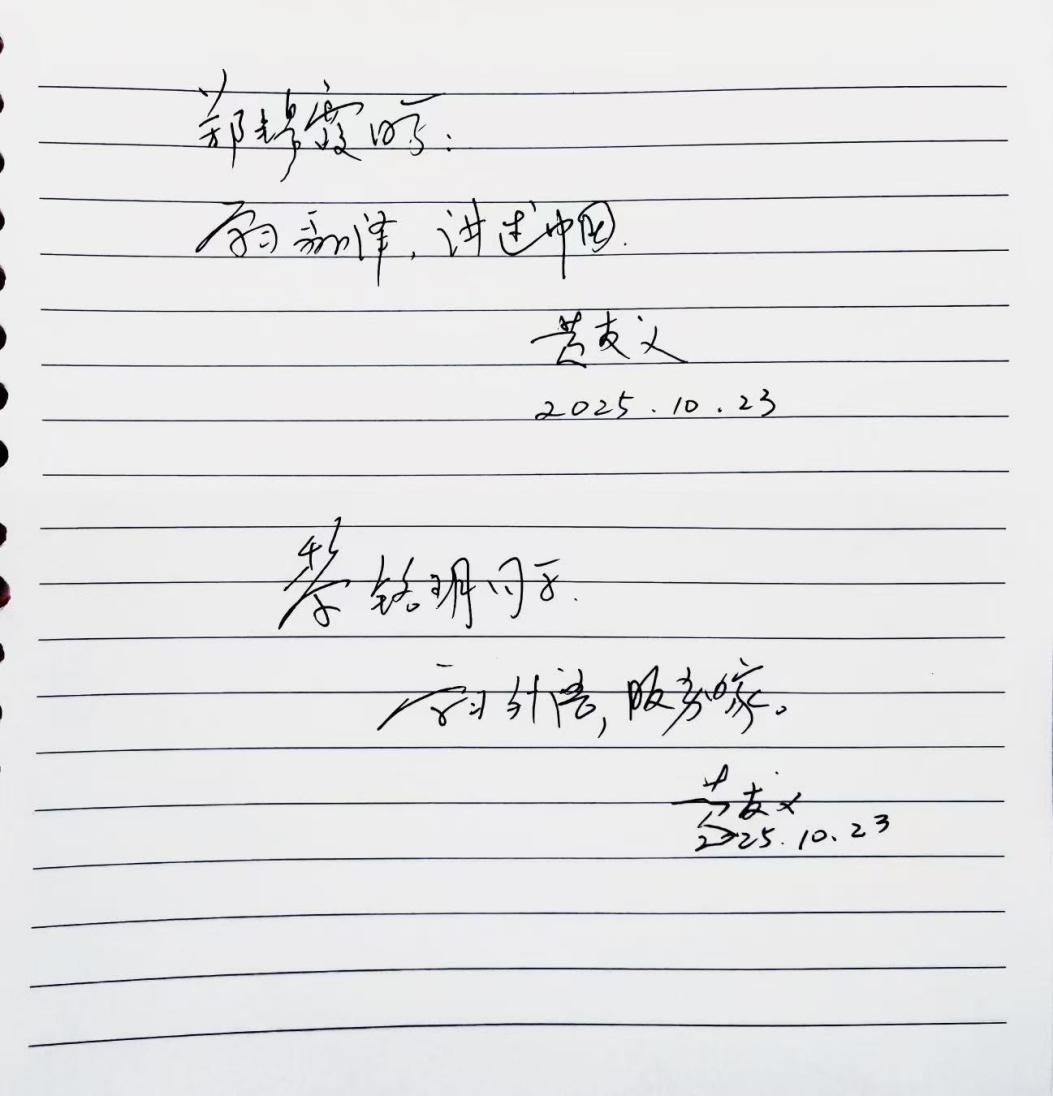 黄友义给同学们题词勉励