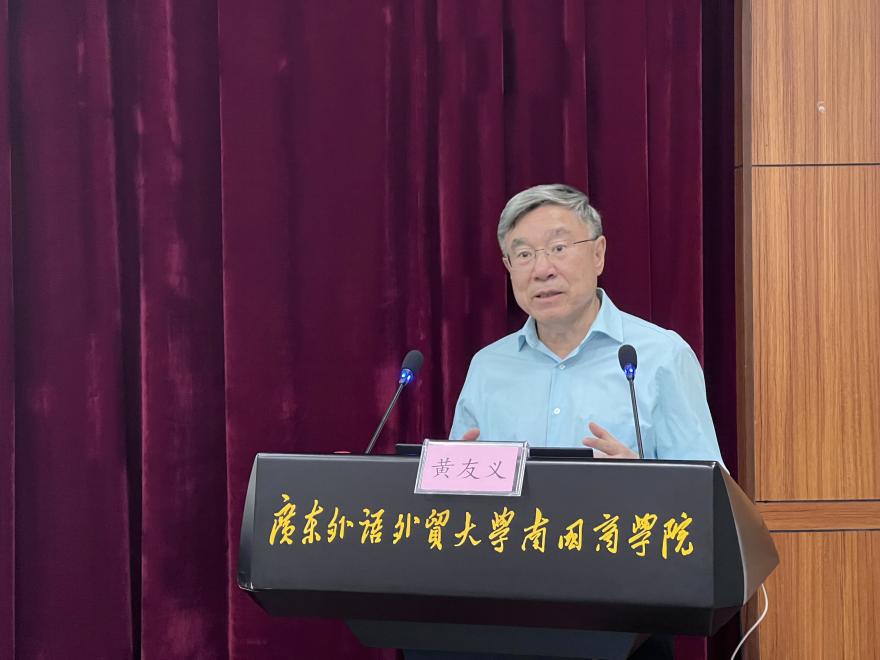 20251024日下午15:00,多语种中华文化译介研究中心成功举办学术讲座,特邀中国外文局译审、中国翻译协会常务副会长黄友义先生担任主讲嘉宾。本次讲座主题为“人工智能语言时代,我们为什么要学习外语和翻译?”,吸引了全校130余名师生参与英文学院院长温宾利教授主持讲座。