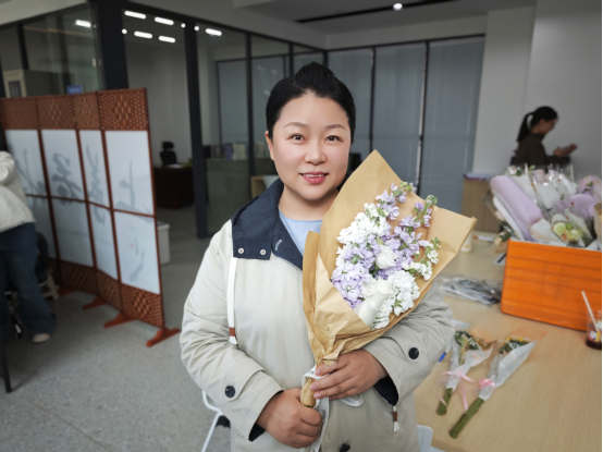 活动当天,学生代表们手持精心挑选的鲜花,带着饱满的热情,分组前往各系办公室,将一束束娇艳的鲜花送到每一位女教师手中,轻声道上“老师,节日快乐!”“感谢您的辛勤付出!”。鲜艳的花束映衬着老师们温柔的笑容,整个校园都洋溢着温馨和谐的节日氛围。收到鲜花的女教师们脸上满是惊喜与感动,纷纷驻足接过这份特殊的心意,与学生代表亲切交流,定格下一幕幕温暖的瞬间。