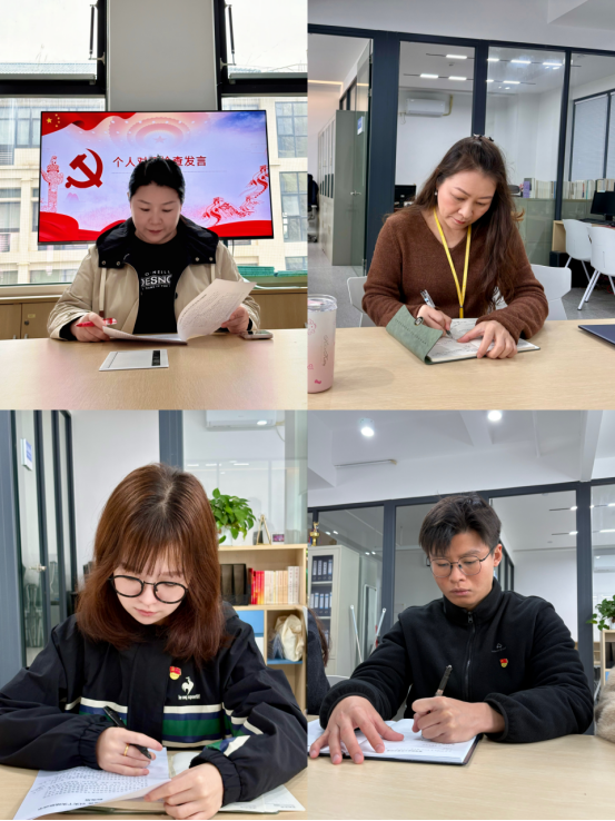 会上,谢丹平书记进行“第一议题”领学并代表学院领导班子作对照检查,从以往整改措施落实情况入手,全面总结了2024年度民主生活会深入贯彻中央八项规定精神学习教育相关问题的整改成效,深入查摆了班子在政治忠诚、党性修养、敬畏法纪、担当作为、管党治党等方面存在的突出问题,深刻剖析了问题产生的根源,并结合学院发展实际,明确了努力方向和具体整改措施。