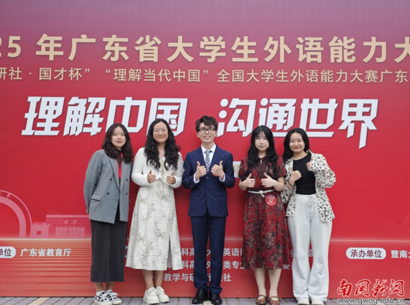 In the recently announced winners of the 2025 Guangdong Provincial College Students' Foreign Language Proficiency Competition and the “FLTRP·ETIC Cup” “Understanding Contemporary China”, outstanding contestants selected by SCBC College English Teaching Department and School of English Language and Culture competed alongside students from universities across Guangdong province. SCBC students achieved remarkable results, securing 1 gold, 3 silver, and 2 bronze medals. Li Qianyu from the 24th English Innovation Class (24th Portuguese) qualified for the national finals in the International Communication Comprehensive Competency category. Three instructors from College English Teaching department—Tang Cuicui, Yu Enze, and Li Kewei—were honored with the title of “Outstanding Instructor” for their professional guidance and dedicated efforts.