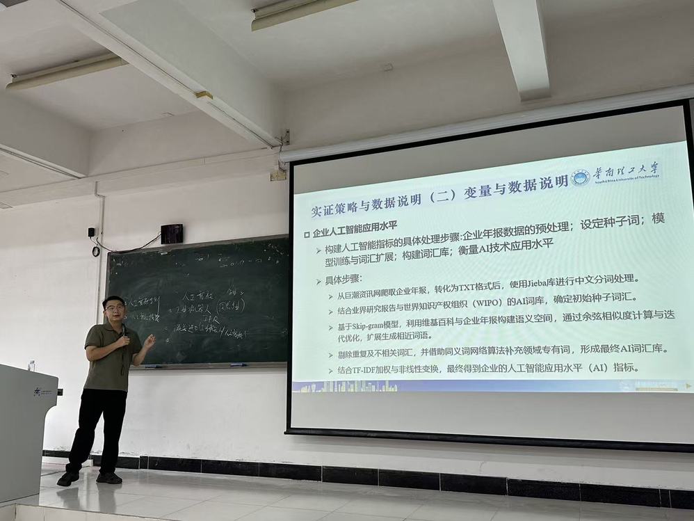 2025年10月23日下午,由科研处和教师发展中心联合主办,国际经贸规则研究中心、经济学院和广东服务业数字化发展与管理创新研究基地承办的南国“争鸣”系列学术沙龙之第13期在F402顺利举行。本期沙龙聚焦“人工智能应用与跨国供应链断裂”这一前沿议题,特邀华南理工大学经济与金融学院博士生导师黄亮雄教授担任主讲嘉宾。