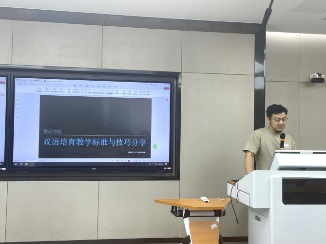 9月25日,管理学院于G304召开双语培育教学专题研讨会,45岁以下青年教师参会。会议由工商管理系主任冯炫淇老师主讲,围绕“双语培育课的内涵、授课技巧及听课标准”三大核心议题展开,结合前期实践经验,为青年教师提供系统指导,助力落实“十四五”规划中双语课程占比要求,推动学院双语教学高质量发展。