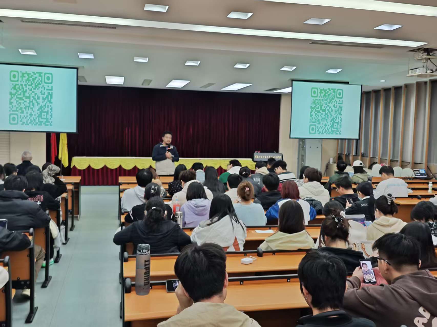 1120号晚上,1120日晚,小红书AI赛道头部博主、国际4A创意总监庞健冬受邀走进工商系实践周为300余名师生带来一场前沿内容创作实践分享。工商系主任冯炫淇、副主任翁丽丽、胡林副教授及市场营销专业学生共同参与。