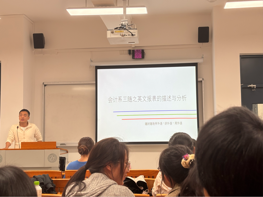 12月11日下午,管理学院会计系举办的英文报表的描述与分析三随分享会在英文楼B305举行,会计系欧杰老师、姜少帅老师作为指导老师出席了本次活动。