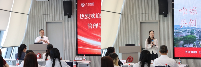 活动首站抵达广东天龙科技集团股份有限公司(以下简称“天龙集团”),受到公司董事长、总裁冯毅先生等的热情接待。天龙集团是一家集互联网营销服务与精细化工产品研销于一体的上市公司,走进天龙集团,师生们被其“一体两翼·双轮驱动”的运营模式所吸引。公司副总裁、董事会秘书王晶女士主持了调研活动并围绕“制造力、产品力、创新力”,详细介绍了发展历程、行业现状、技术创新规划及人才需求趋势。