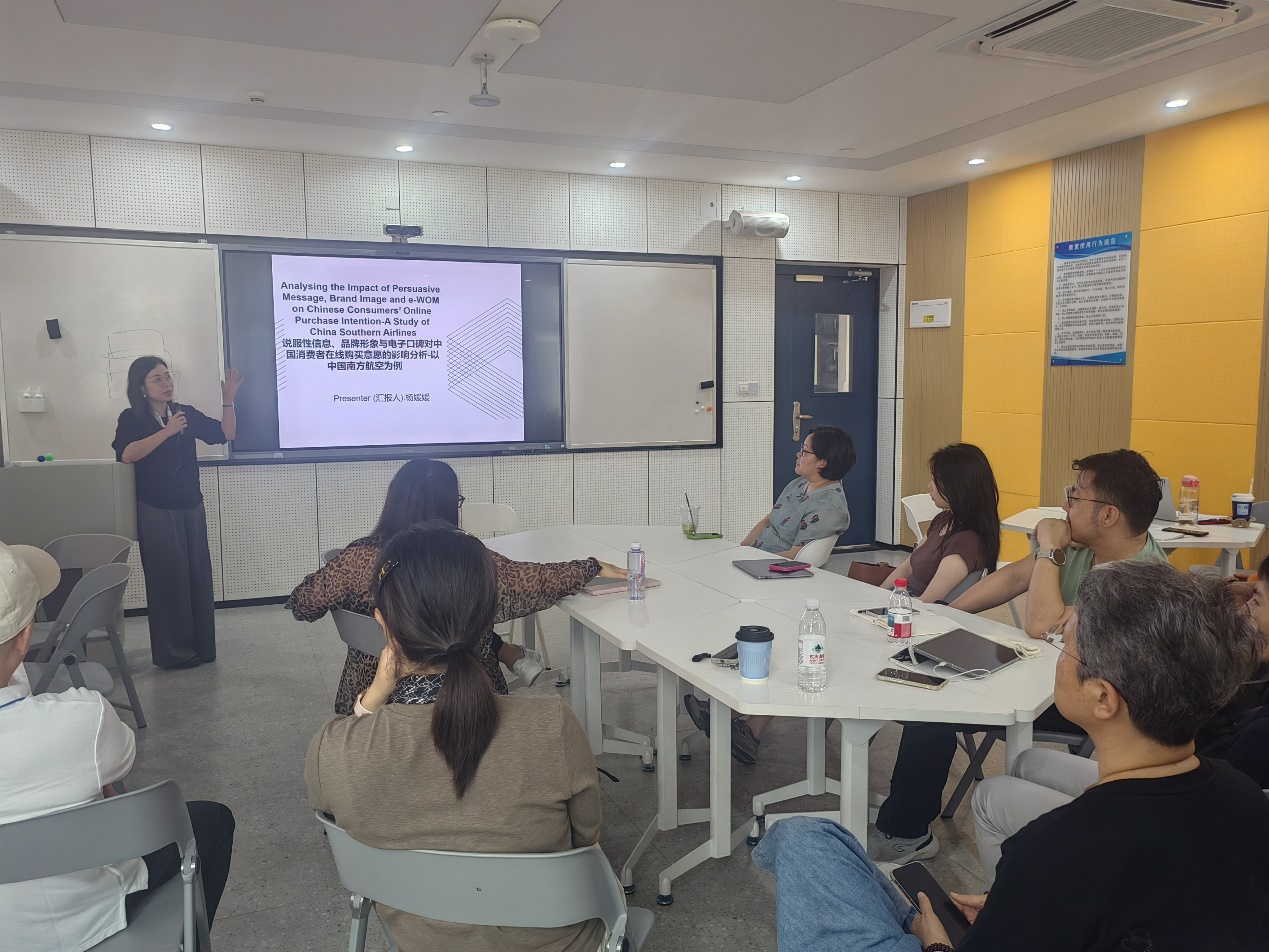 4月9日,由科研处、教师发展中心、管理学院空港品牌与数字化营销创新研究团队联合主办的2026年第3期南国“争鸣”系列学术沙龙在H403顺利举行。本次沙龙以“广东非遗品牌数字化营销创新研究”为主题,由杨晓燕教授担任主持人,翁丽丽、金丽丽、杨媛媛、陈迪四位老师带来精彩分享,吸引了众多师生参与交流。