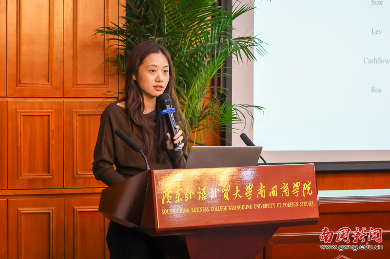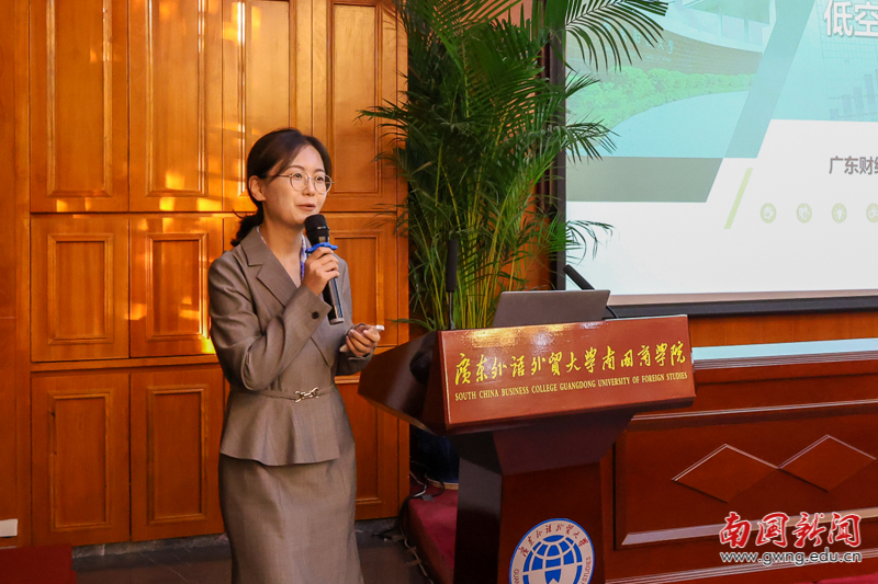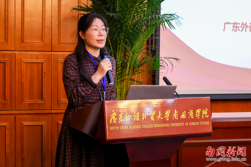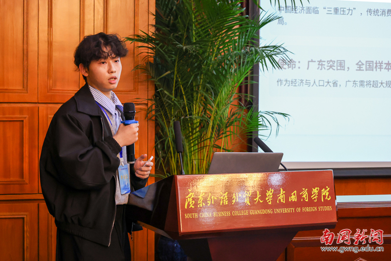 论文交流环节由经济学院副院长高洁主持。交流开始前,大会先对优秀论文作者进行表彰——从征集到的30篇论文中评选出10篇优秀论文,颁奖嘉宾为获奖代表颁发证书。表彰结束后,夏海霞、李淑一、周泳光、方泽凯、党雪、欧杰、吴锋、邓永亮等八位来自省内高校的获奖作者先后登台,结合自身研究方向分享核心成果。他们的研究紧密围绕广东经济发展与国内大循环需求,涵盖多类关键领域:既有广东外贸企业韧性提升、低空经济财政支持等产业政策议题,也包含数字化创新与收入不平等、人工智能金融应用等科技经济关联领域分析,还涉及Z世代消费潜力释放、数据资产信息披露等消费与企业发展维度研究,兼具学术深度与实践针对性,引发现场广泛关注。