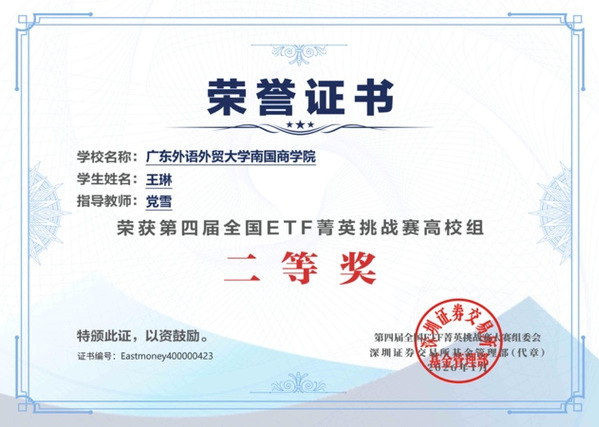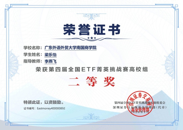 在本届比赛中,我院学子深入钻研宏观经济形势、行业发展趋势及ETF产品特性,灵活运用所学知识制定并动态调整投资策略。最终,23金融学王琳和23国贸梁乐怡同学凭借其稳健且富有前瞻性的策略布局,荣获全国二等奖。此外,有31位同学以其严谨的分析和出色的执行能力获得全国三等奖,32位同学获得优秀奖,整体获奖面广,成绩喜人。