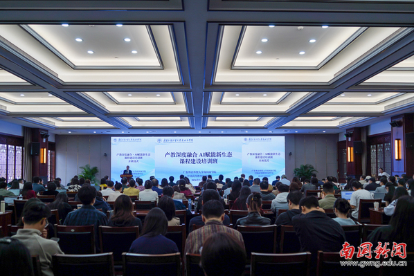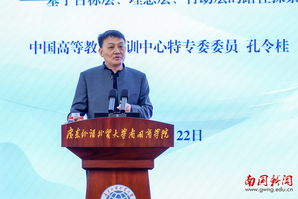 中国高等教育学会副会长、中国高等教育培训中心主任姜恩来在致辞中,对培训班的举办表示祝贺并向参会人员致以欢迎。他指出,我国高等教育正迈向高质量发展关键阶段,国家相关规划与政策为应用型高校发展指明方向,南国商学院立足地方性、应用型、国际化办学定位,以课程建设为切入点推进高质量发展,此次培训的举办正当其时、意义深远。同时,他从行业发展层面对学校产教融合与AI课程建设工作分享指导思路,强调要瞄准产业需求重构课程体系,依托AI赋能改造人才培养方案;坚持能力导向创新教学模式,构建“师、生、机”三元一体未来课堂;健全以产业需求为导向的多元协同评价体系,加大实践与创新能力评价权重;强化制度保障,构建校企协同育人新生态,推动课程共建、师资共育。他希望参训人员以此次培训为契机,深耕学习、学以致用,以实干助力学校高质量发展,为粤港澳大湾区人才培养、教育强国建设贡献力量。