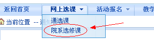 步骤三 进入教务管理系统后点击“网上选课→院系选修课”