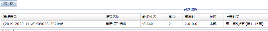 步骤五 点击“提交”按钮完成选课。