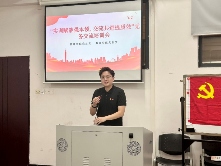 为进一步夯实党务工作基础,规范党务工作流程,提升两院党务工作者业务能力与实操水平,促进互学互鉴、共同提升。3月19日下午,教育学院党总支联合管理学院党总支在F304教室召开“实训赋能强本领 交流共进提质效”党务交流培训会。教育学院及管理学院党总支书记(书记助理)、各党支部书记、学生党务骨干齐聚一堂,共学共进、互促提升。