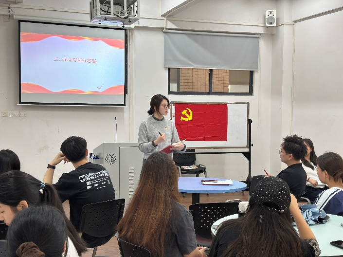 在核心的实务培训环节,管理学院第三党支部郑童欣同学以支部标准化建设实践为蓝本,从组织架构、党员发展时间轴、材料规范抄写、分阶段群聊管理四大维度作经验分享。