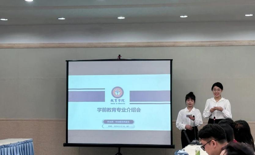 秋风轻拂,带着收获与希望的讯息,学前教育(师范)专业满怀喜悦地迎来了2024级新生的加入。为帮助新生提升对学前教育专业的了解与认识,指引前行方向,教育学院学前教育系于2024年9月12日下午两点,在C202会议室成功举办了以“淳朴兮孩子,斯文兮先生”为主题的学前教育(师范)专业新生见面会。本次会议由陈颖琦同学和蔡卓彤同学共同担任中英文双语主持人,教育学院副院长肖建芳教授,副院长翁琳副教授,段鸿教授、冯冰清教授,学前系主任王晟老师、副主任许冰洁老师,以及全体学前系教师和2024级学前教育(师范)班全体新生共同参与。