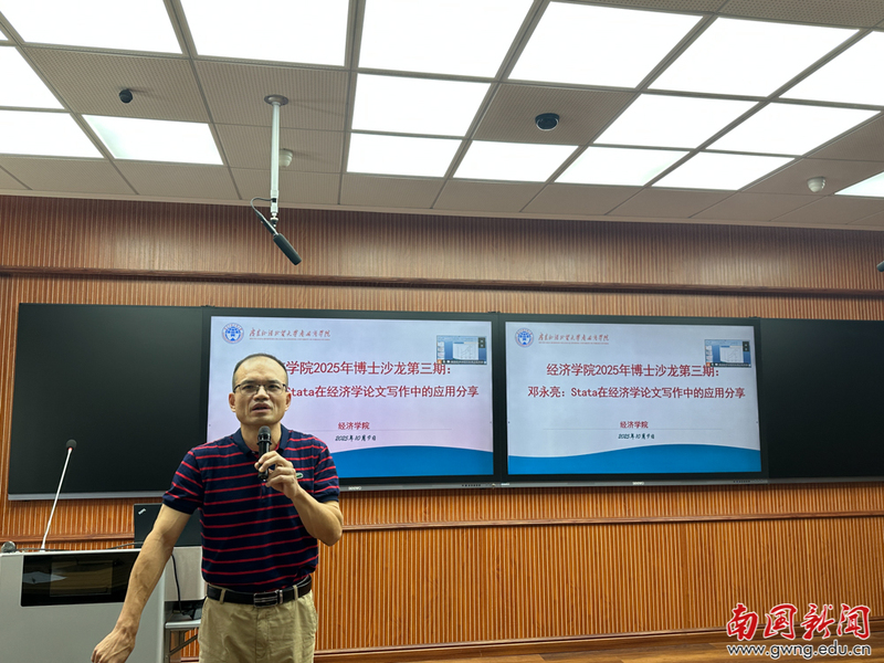 9月10日下午,经济学院在G301会议室成功举办了一场以“Stata在经济学论文写作中的应用分享”为主题的博士沙龙(工作坊)第13期活动,活动由学科建设办公室(博士工作站)、科研处、教师发展中心和经济学院主办,经济学院邓永亮博士作为主讲嘉宾。