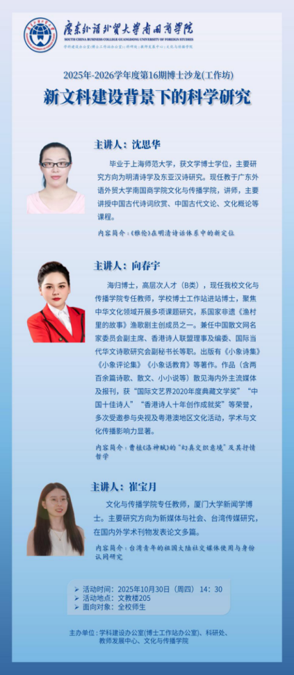 讲座时间:2025年10月30日(周四)14:30